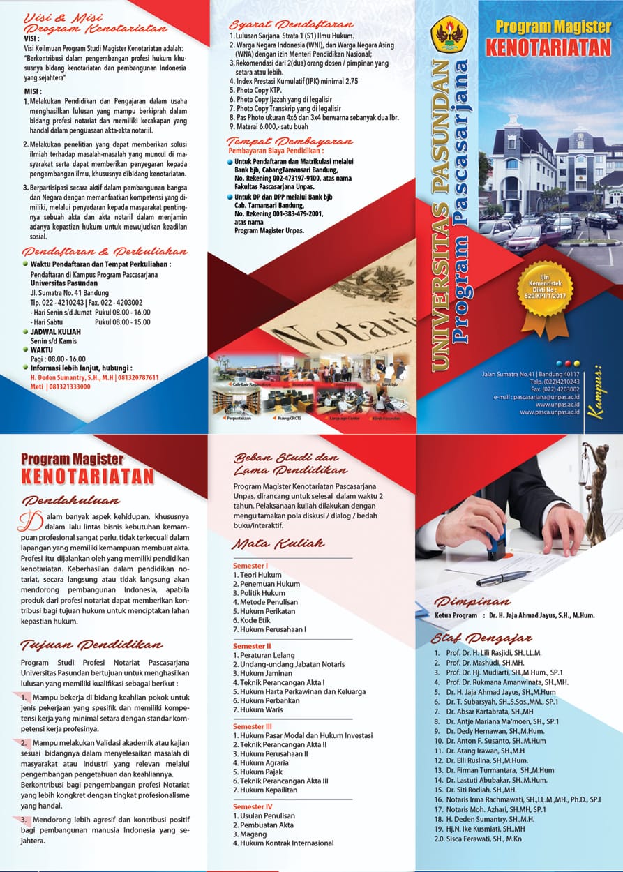 Kami informasikan untuk pendaftaran S2 Kenotariatan Pascasarjana Unpas masih dibuka untuk Tahun Akademik 2020/2021, untuk informasi lanjutnya silakan bisa menghubungi Bagian Informasi Pascasarjana Unpas di